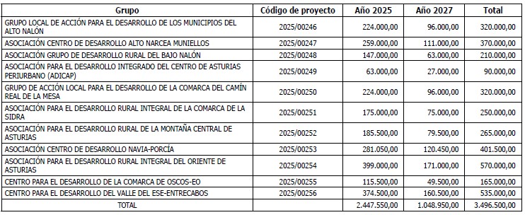 Con fecha de 11 de diciembre de 2025 se ha publicado en el BOPA la resolución de 4 de diciembre de 2025 de la Consejería de Medio Rural y Política Agraria por la que se aprueba la convocatoria plurianual 2025, en concurrencia competitiva, de las ayudas Leader del ticket rural y del ticket del asalariado.
